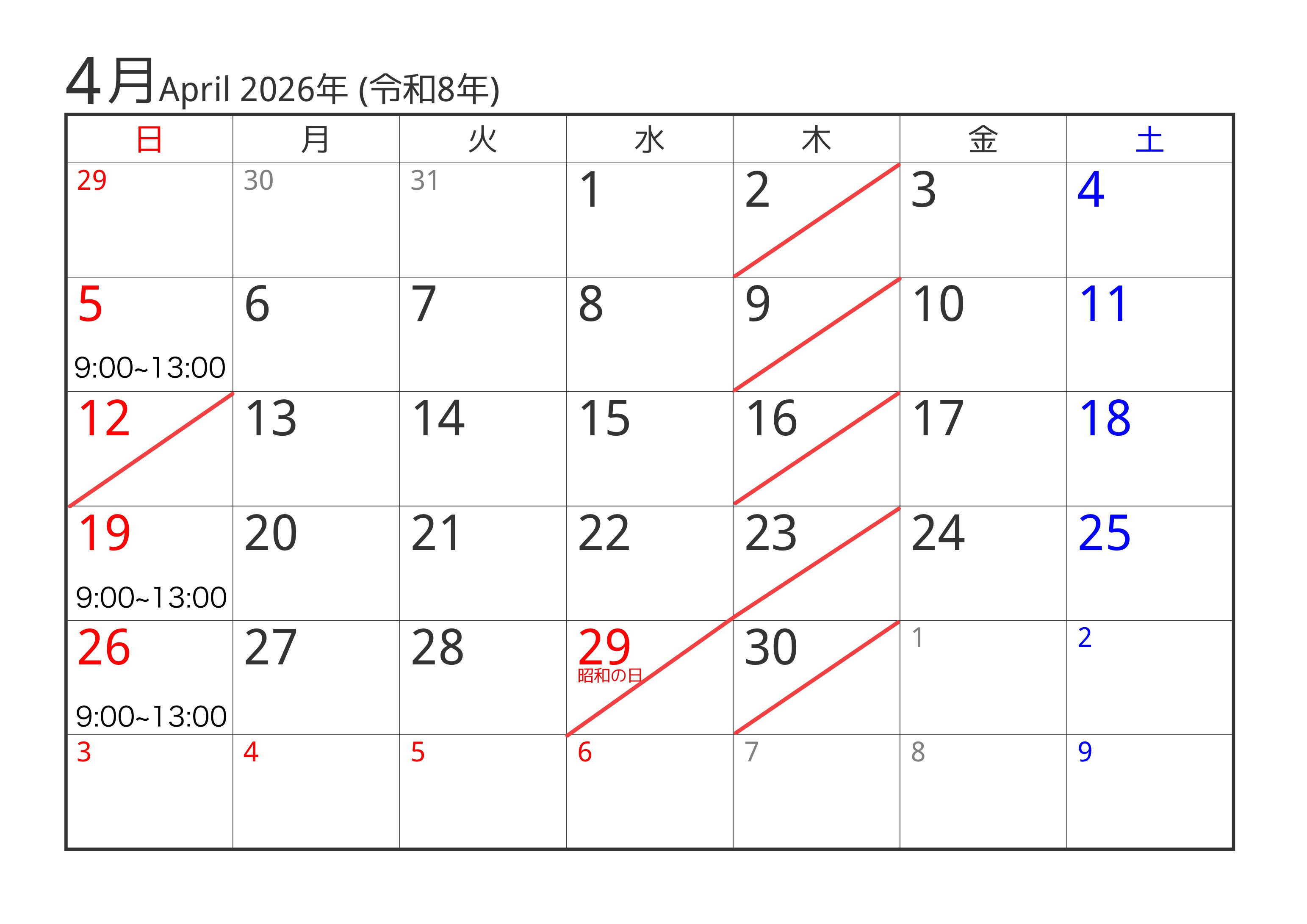 | 9時~1時 |